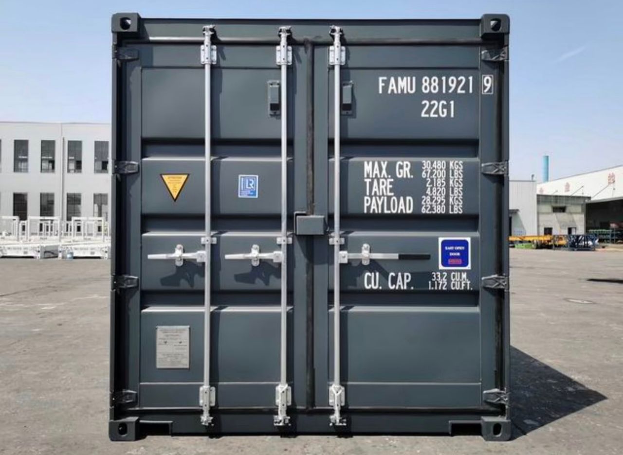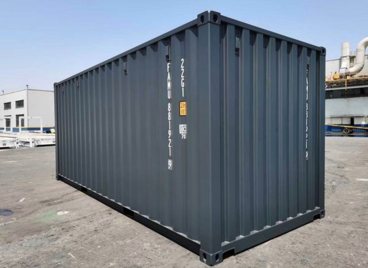 Dieser 20-Fuß-Standardcontainer (Typ 22G1) in Anthrazitgrau ist ein hochwertiges Produkt, ideal für die sichere Lagerung wertvoller Güter, den Export oder exklusive Ausbauprojekte.