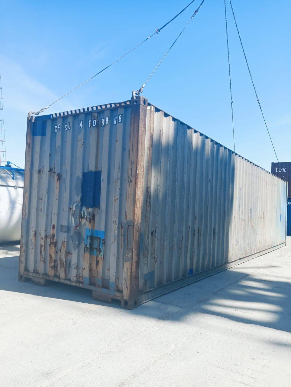 Dieser blaue 40-Fuß-High-Cube-Container ist eine robuste Einheit, die für den internationalen Massenguttransport und die sichere Lagerung großer Mengen konzipiert wurde. Seine High-Cube-Bauweise bietet mehr Kopffreiheit und ist ideal für sperrige Güter oder Bauprojekte.